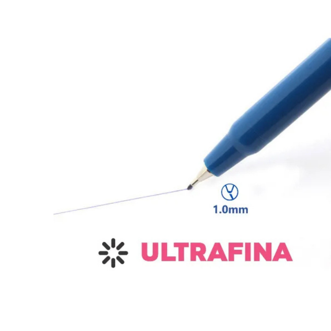 Sua ponta especial de poliacetal é fina, permitindo traços precisos e detalhados. Destaca-se por sua versatilidade em atender às diferentes necessidades em situações cotidianas. Importante notar que este produto não é recarregável.