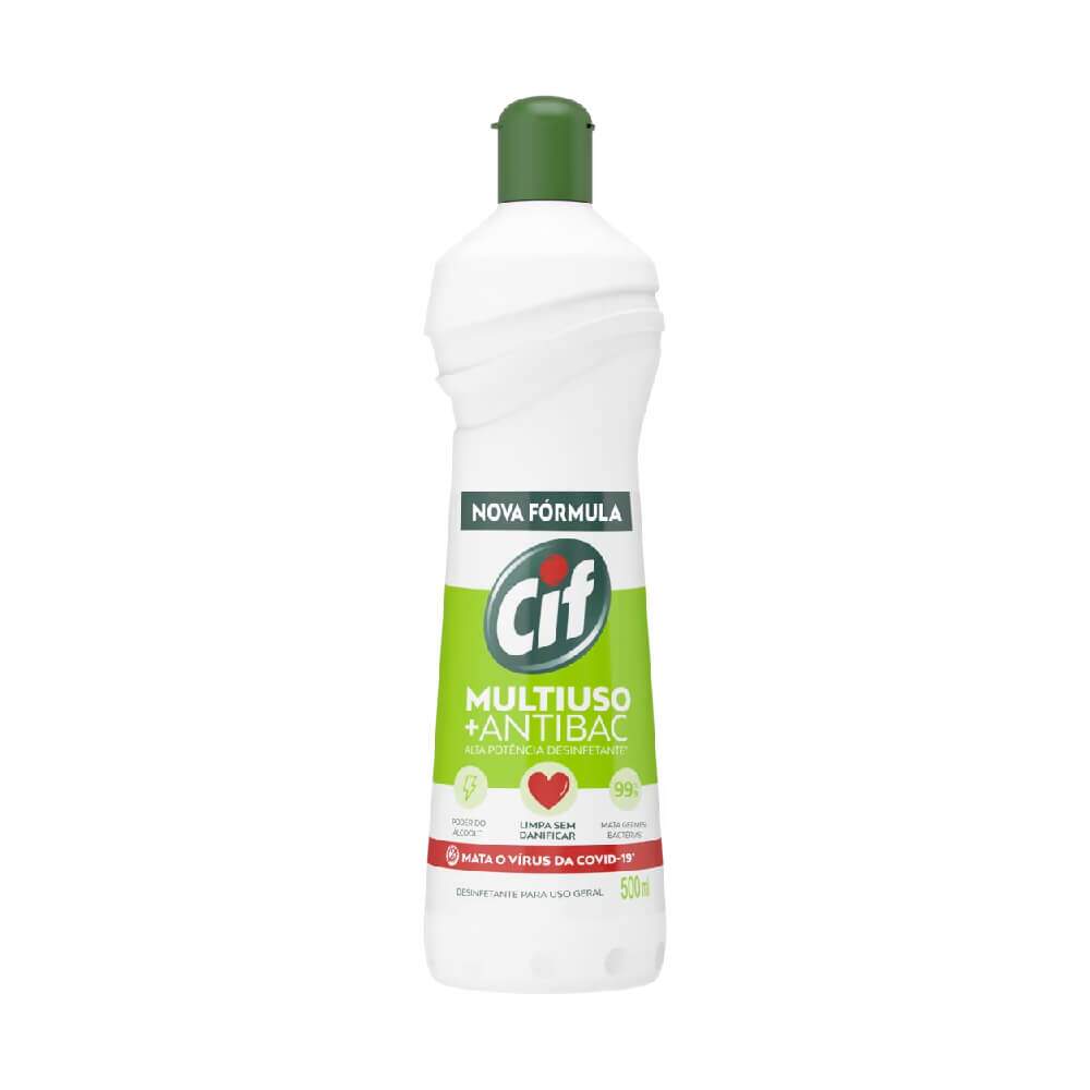 CIF Multiuso Antibac é um limpador multiuso que possui alta potência desinfetante* e mata 99,9% dos germes / bactérias*. Com a tecnologia de CIF Antibac, você protege sua casa e limpa sem danificar. A fórmula do limpador CIF Multiuso Antibac 500ml possui o poder do álcool** e mata germes / bactérias*. CIF Multiuso Antibac é o produto ideal para ser usado em toda sua casa, deixando as superfícies limpas e livres dos germes/bactérias e vírus. Sem a necessidade de enxague após o uso.
