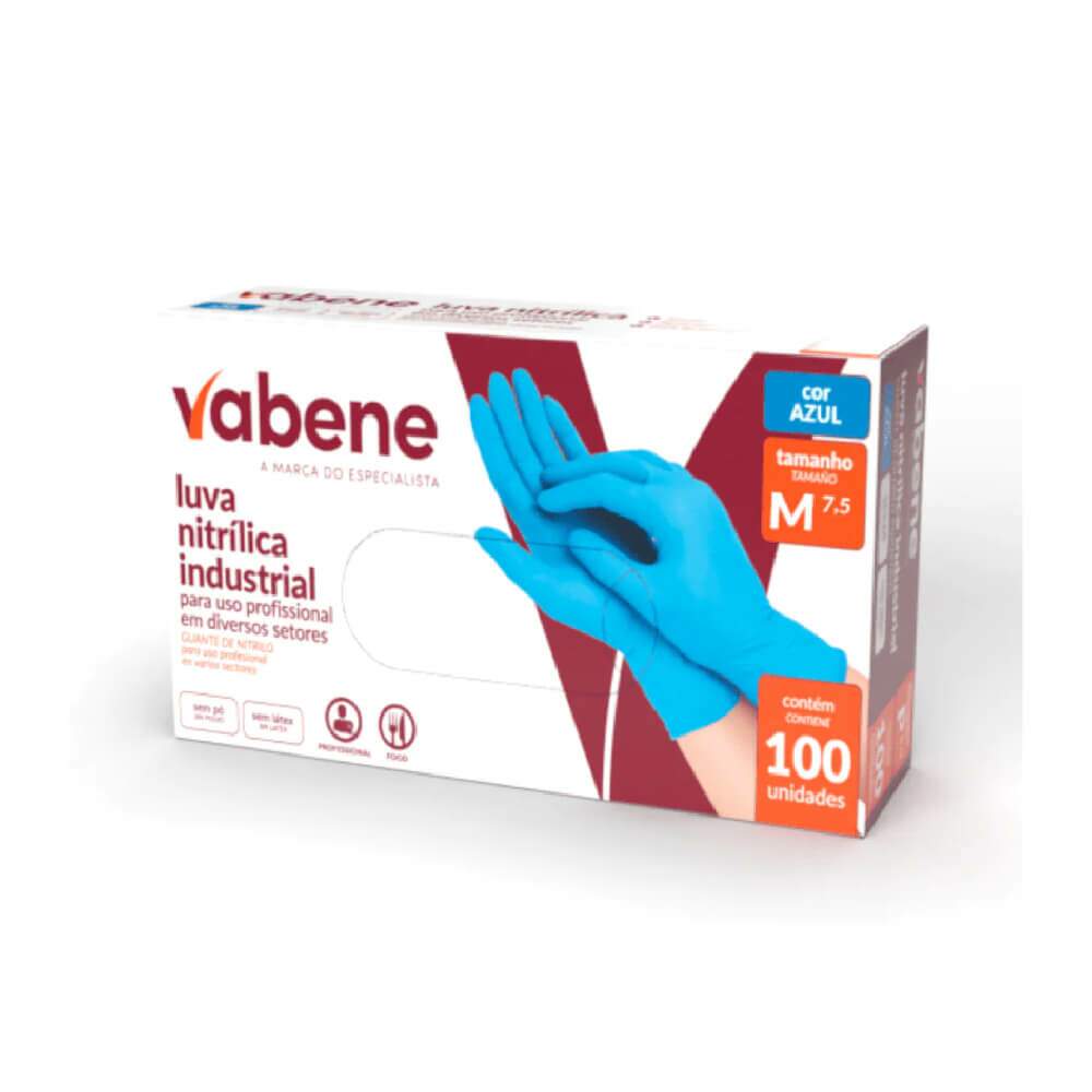 luva nitrílica média sem pó azul caixa com 100 - vabene